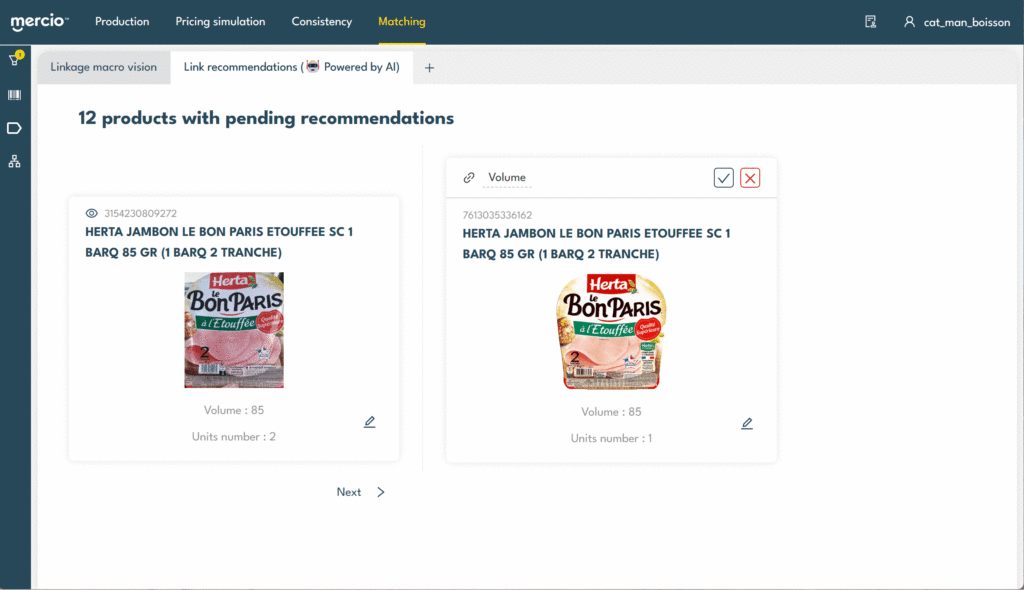 Das Produkt-Matching oder Verkettung besteht darin, verschiedene, aber für den Verbraucher vergleichbare Artikel miteinander zu verknüpfen. Mit der zunehmenden Diversifizierung der Sortimente (Eigenmarken, Exklusivprodukte) ist dieser Prozess zeitaufwändig und äußerst mühsam geworden. Dennoch ist er unverzichtbar, um die Konkurrenz zu analysieren und Preise anzupassen. Semantische Analysen und KI ermöglichen es, diesen Prozess weitgehend zu automatisieren, während komplexe oder nicht standardisierte Fälle weiterhin manuell geprüft werden. Ein kombinierter Ansatz gewährleistet so ein präzises Matching, das entscheidend für ein effektives Preismanagement und eine starke Preiswahrnehmung ist. In diesem Artikel teilen wir unsere Erfahrungen mit den neuesten Entwicklungen auf diesem Gebiet.